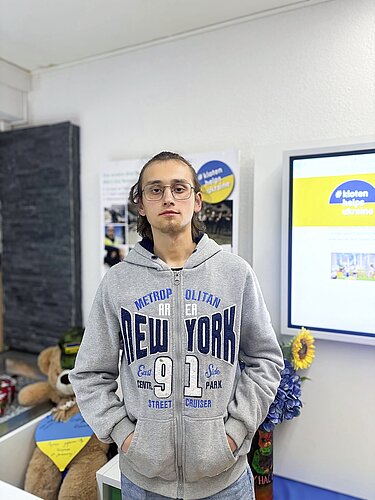 Ins Ukrainische übersetzt wird das, was Buchs erzählt, von Vadym Yarmolenko. Der 19‑Jährige ist heute Koordinator für die Ukraine-Reisen im Verein. Er ist selbst vor knapp einem Jahr geflüchtet. «So lerne ich immer besser Deutsch, und das ist wichtig», sagt er.