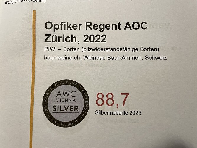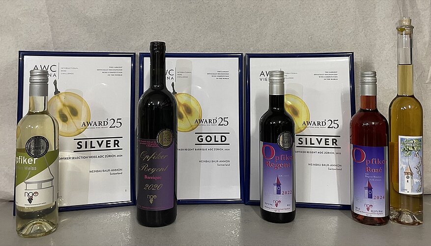 Einmal Gold und zweimal Silber lautet das Verdikt der Weinverkostung von AWC Vienna 2025. Damit sind nun alle Weine der Rebberg-Genossenschaft Opfikon mindestens einmal ausgezeichnet worden. Und man kann sie auch beziehen und seine Gäste überraschen!