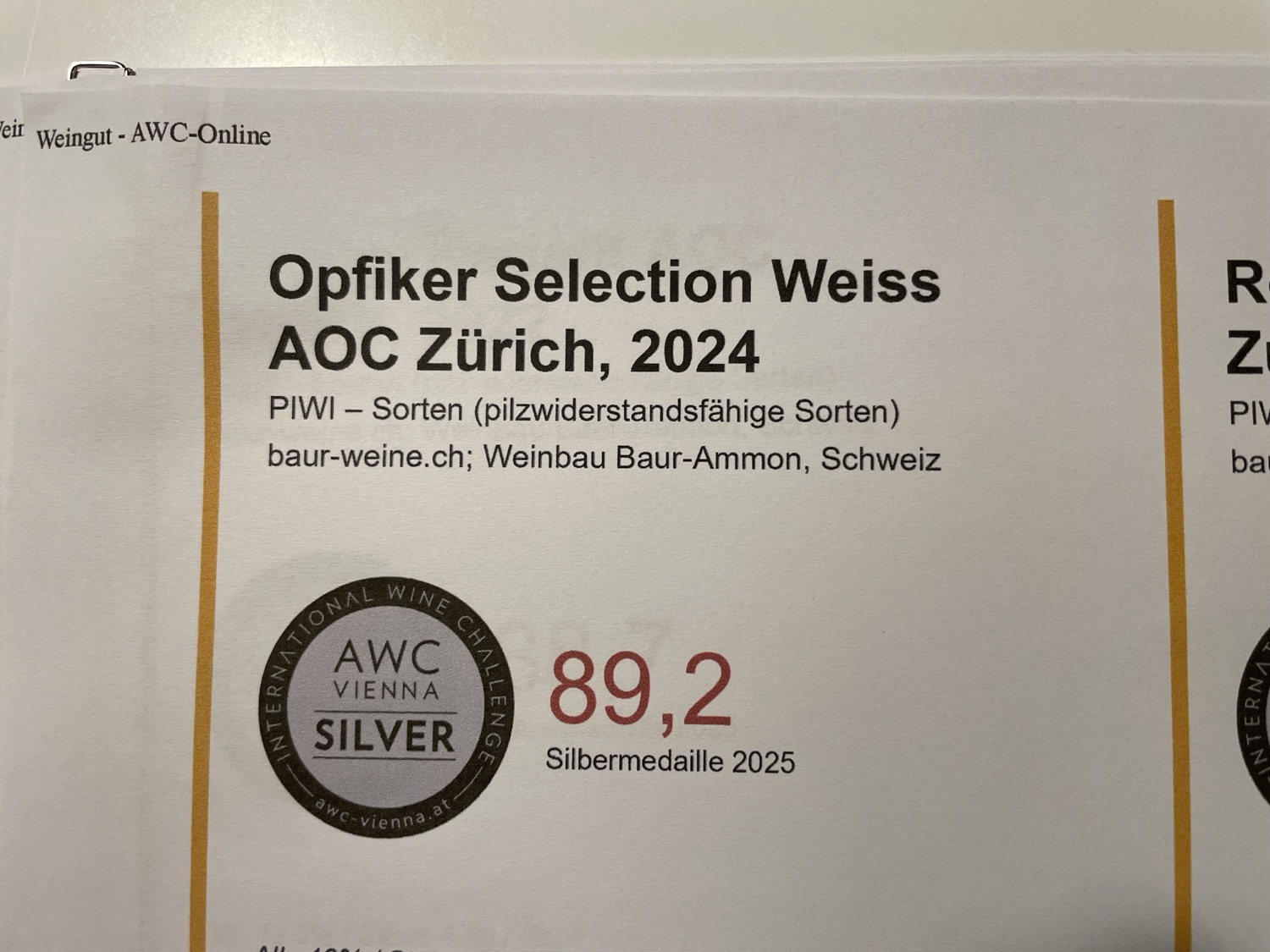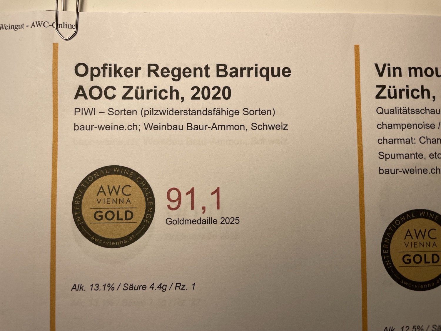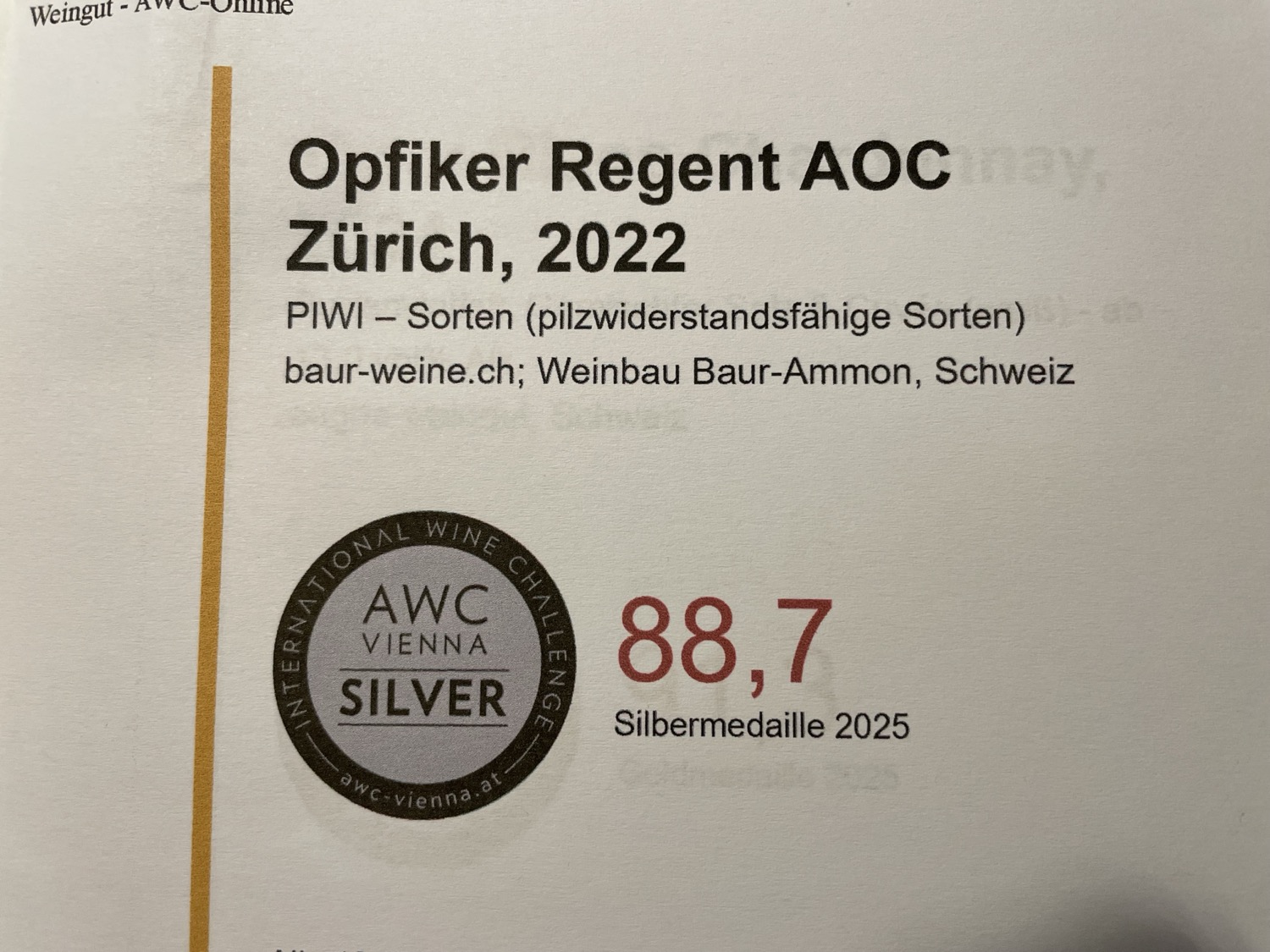 Der Austrian Wine Challenge (AWC) gilt als einer der renommiertesten weltweiten Weinwettbewerbe. Die Fachjury setzte sich aus gut 300 internationalen Expertinnen und Experten zusammen und hatte dieses Jahr Weine aus 21 Nationen zu bewerten. Von der Rebberg-Genossenschaft Opfikon (RGO) wurden die beiden Rotweine Barrique 2020 und Regent 2022 sowie die neu produzierte Selection Weiss 2024 eingereicht.
