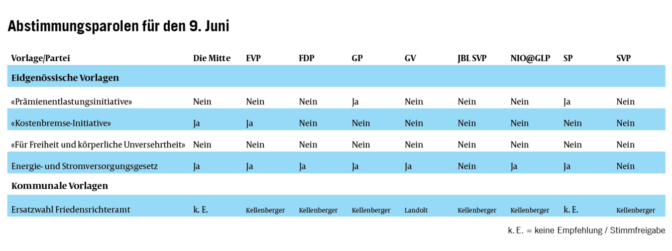 Dies sind die Empfehlungen der Opfiker Parteien für die Abstimmungen vom 9. Juni 2024.