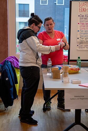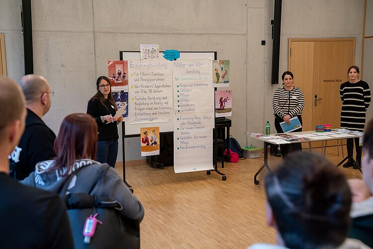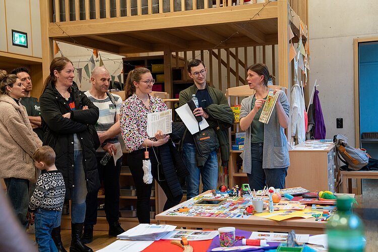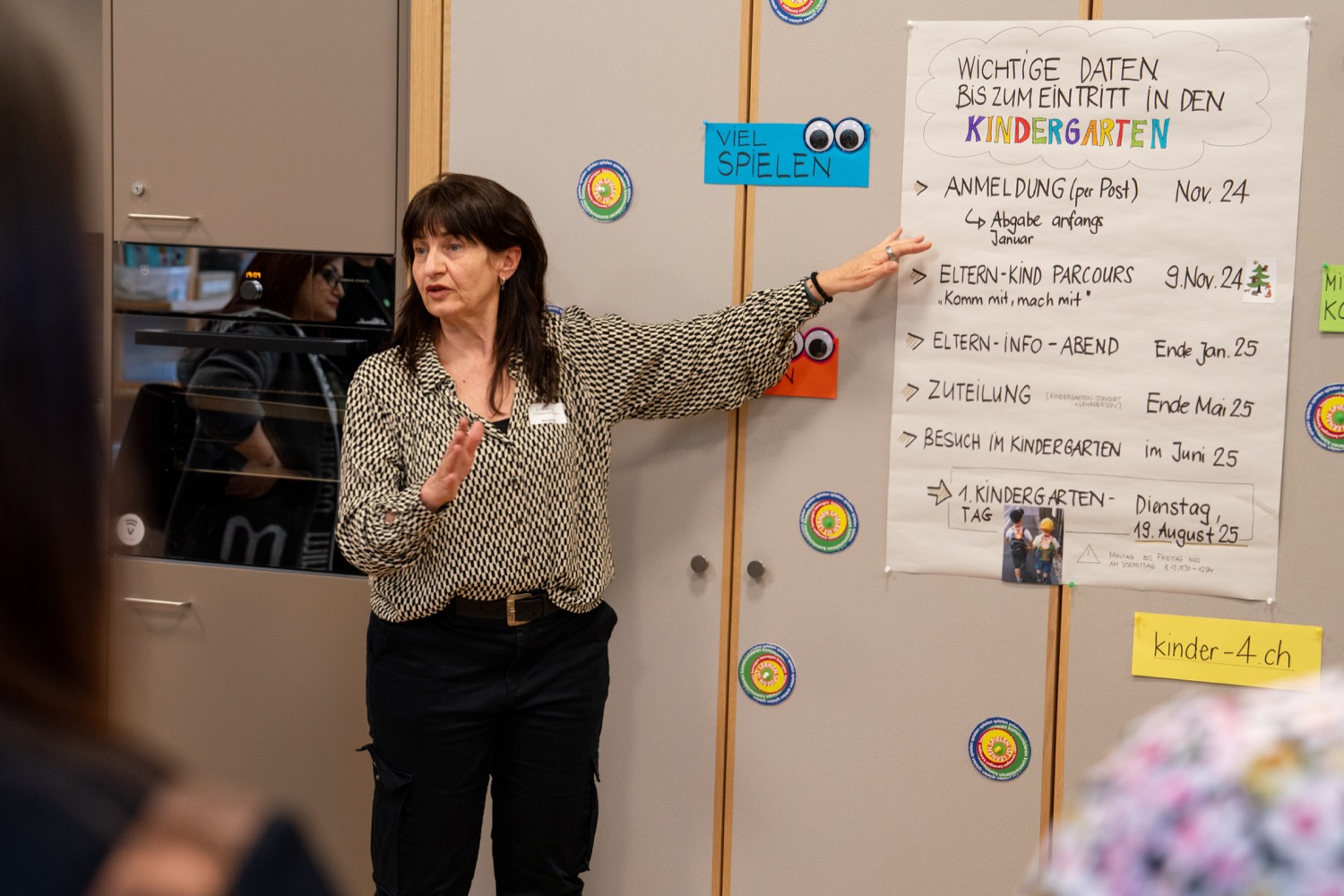 Nach einer kurzen Eröffnungsrede teilten sich die Eltern in Gruppen auf und erhielten bei jedem Posten einen rund 15-minütigen Input zu den verschiedenen Angeboten. Die Posten sind thematisch abgetrennt und beinhalten Beratung, Elternbildung, Freizeitangebote, Spielgruppen und Bibliothek und einen allgemeinen Infoteil zum Kindergarteneintritt.