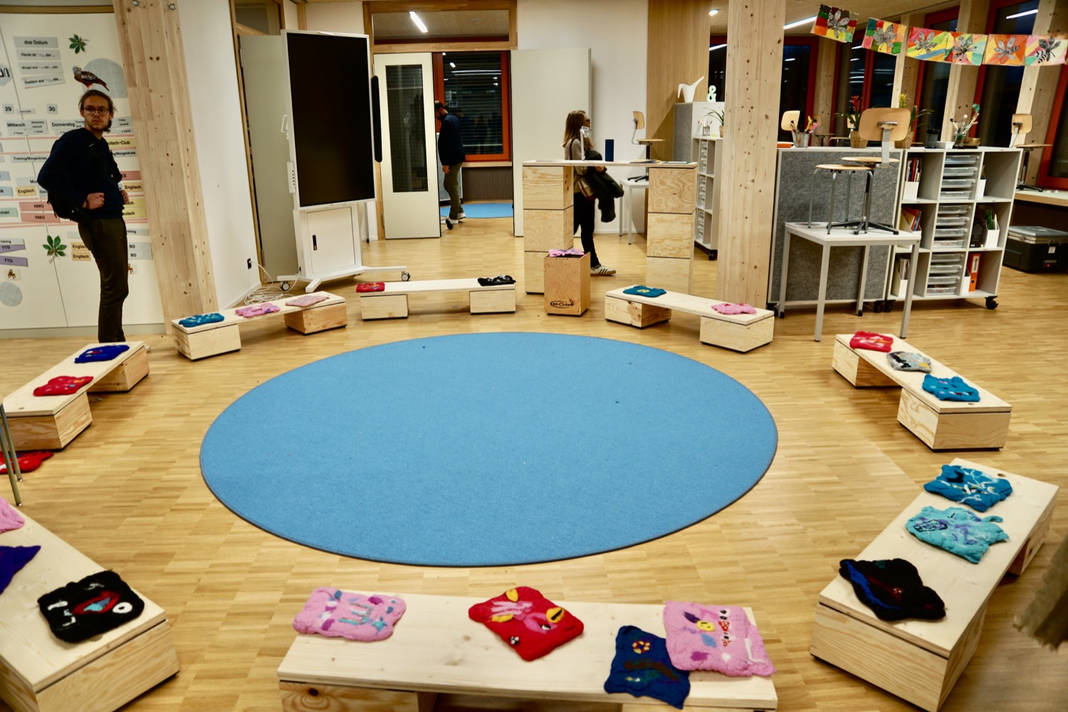 Schulpräsident Reto Bolliger zeigte sich «stolz», dies alles zu präsentieren, und betonte, wie gut sich das Gebäude zwischen Wald und Wohnquartier eingliedere und sich die Teams auf diese neue Art des Unterrichtens vorbereitet hätten. Der Start sei sehr gut gelungen, auch wenn dies «kein normales Schulhaus» sei. «Und es freut mich, dass wir viele Lehrpersonen des Schulhauses Mettlen dafür begeistern und sie hierher mitnehmen konnten.» Einige Klassen wurden temporär von dort hierhin verlegt, um sanieren zu können. Dass der Turnunterricht bis zu den Herbstferien draussen stattgefunden habe, sei angesichts des Wetters zu verkraften gewesen.