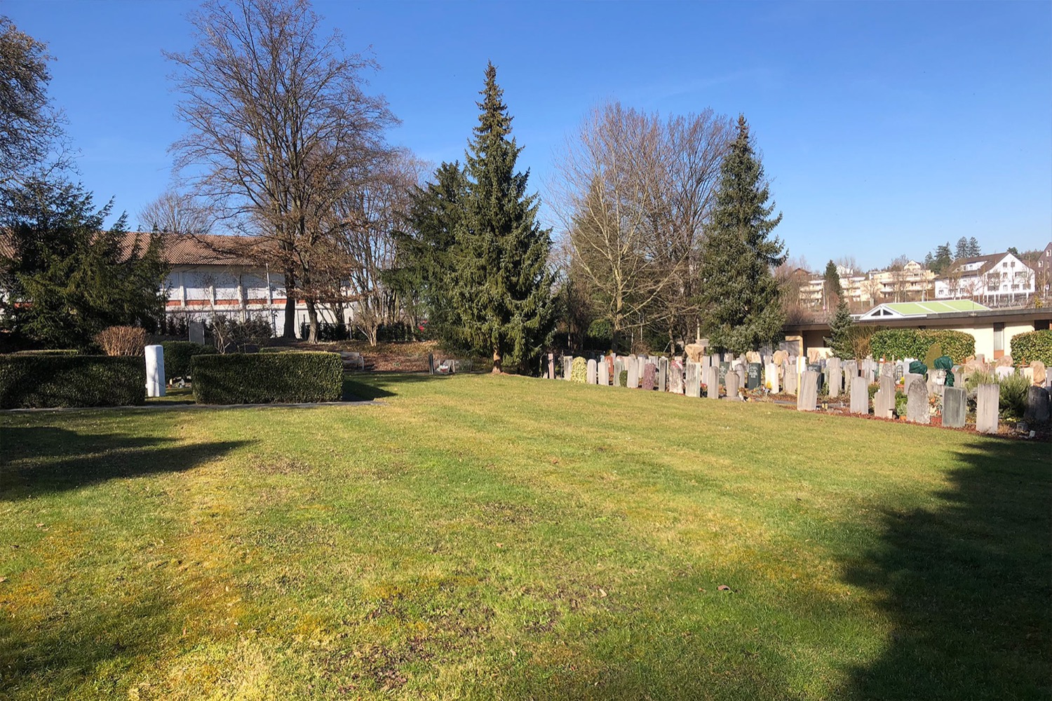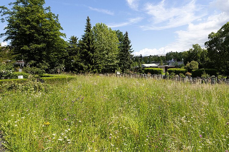 Der Vorher-nachher-Vergleich macht’s deutlich: Die Blumenwiesen, wie hier auf dem Opfiker Friedhof Halden, sind auf Kurs. Nach nur einem Jahr hat sich eine grosse Vielfalt eingestellt.