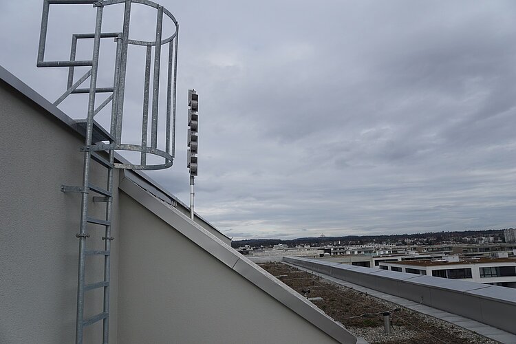 Dieses Jahr gibt es in Opfikon eine Premiere: erstmals erschallt über dem Glattpark eine zweite Sirene. Die bestehende auf dem Hochhaus des Alterszentrum Gibeleich vermochte das Stadtgebiet nicht mehr abzudecken. Deshalb hat man auf dem neuen Schulhaus, dem einzigen öffentlichen Gebäude im Neubauquartier, eine zweite Sirene installiert. Technisch gesehen ist es die gleiche wie im Gibeleich, sagt Markus Bechtel. Der Material- und Technikverantwortliche der Feuerwehr ist heute für die Kontrolle dieser Sirene zuständig.