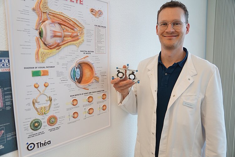 Das Team des Augenzentrums umfasst 20 Fachärztinnen und -ärzte. Seit Januar dieses Jahres gehört Emilian Spörri dazu. Zuvor arbeitete er am Kantonsspital Luzern sowie am Zürcher Triemli- und dem Universitätsspital und bildete sich nach der Chirurgie zum Facharzt für die Augen weiter. «Die Augenheilkunde hat mich schon immer fasziniert», erklärt der 34‑jährige Ehemann und Vater eines 10 Monate alten Sohnes. Es habe neben dem Medizinischen auch viel mit Physik und Optik zu tun, wobei gerade die Technik in den letzten Jahren enorme Fortschritte gemacht habe, was den präzisen Untersuchungen zugute komme. «Der Besuch beim Augenarzt ist schmerzfrei», so Emilian Spörri. (red.)