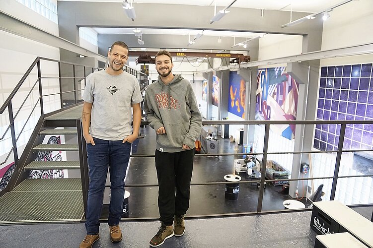 Yassin Tair (links) und Till Boller haben aus der Gebläsehalle eine Galerie gemacht. Nun nehmen sie sich das Aussengelände vor. Bild Roger Suter