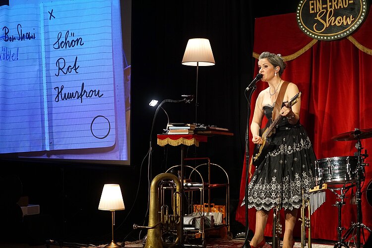 Die Mettlen-Bühne ist dabei ungleich kleiner – was Frölein Da Capo aber nicht stört (ganz im Gegenteil, siehe Kasten). «Die erste Sitzreihe wird ihren Platz bereuen», warnte sie. Und in dieser ersten Reihe sass Ursi (voller Name der Redaktion nicht bekannt), welche Frölein Da Capo drei Stichworte für einen Song liefern sollte. «Dass es sich reimt, kann ich nicht garantieren», so die Bühnenkünstlerin, welche auch Improvisation beherrscht. Denn auf Ursis Stichworte «schön», «rot» und «Huusfrou» erfand Frölein Da Capo spontan einen Blues.