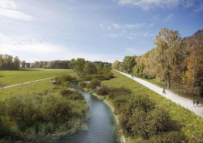 Der Hochwasserschutz – vor gut 130 Jahren Grund für die Korrektur des Flussbettes – ist ein weiteres Ziel der Massnahmen: Der neue Gewässerraum von 50 bis 170 Metern Breite bietet dem Wasser viel mehr Platz. Am Rand sorgen die wenige Dezimeter erhöhten Wege dafür, dass das Wasser nicht zu weit um sich greift. Dazu führen sie künftig mal näher der Glatt entlang, mal weiter weg. Nach Abschluss der Arbeiten soll es rechtsufrig eine Verbindung für Velos oder Inlineskates und auf der linken Seite eine solche für Fussgänger geben. Ein neu angelegter Weiher kann von einer Aussichtsplattform beobachtet werden.