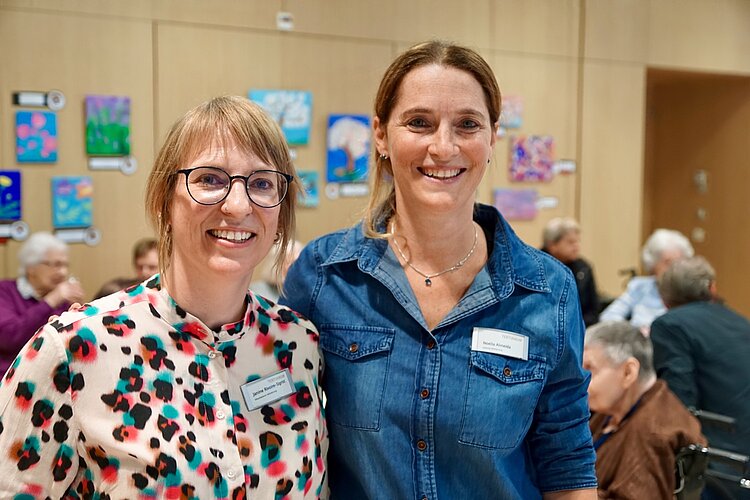 Statt einer Laudatio wurden die Teilnehmenden an der Vernissage einzeln kurz vorgestellt und erhielten einen Blumenstrauss als Dank und Anerkennung für das Geleistete – wahrlich verdient, denn die meisten sind weit über 80 und hatten vorher noch nie einen Pinsel in der Hand. «Der Maltisch war vom ersten Tag an voll», erinnert sich Noelia Almeida von der Aktivierung. «Niemand wusste genau, wie das geht, alle haben einfach probiert.»