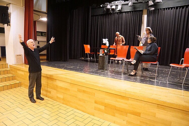 «Es gibt so viele Faustregeln auf der Bühne», führt Peter Locher aus, «etwa die, nie mit dem Rücken zum Publikum zu sprechen. Entweder man spürt das schon, oder man muss es sich antrainieren.» Es dürfe in einer Laienproduktion aber auch Unterschiede geben. «Wichtig für mich ist bei jedem Einzelnen, das Erreichte zu ehren.»