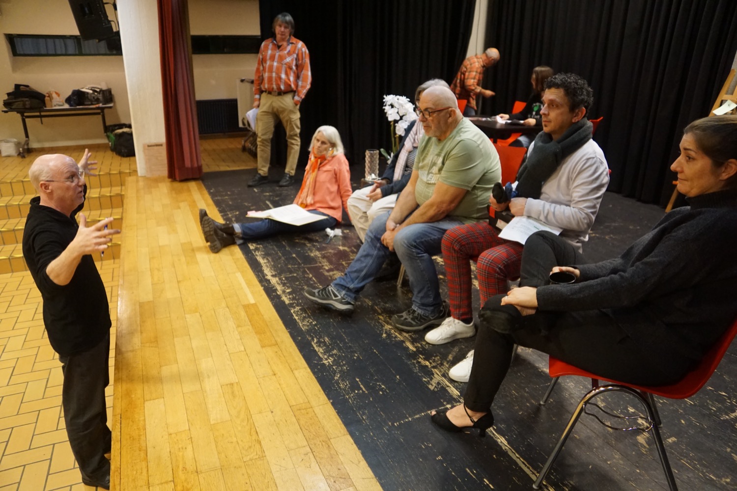 Mit den Proben für das aktuelle Stück hat man am 11. November begonnen. Bis zur Weihnachtspause wurde das Stück einmal durchgespielt. Wichtig sei dabei ein genauer Probenplan, damit alle wissen, wann sie mit welchem Text an der Reihe sind, erläutert Regisseur Peter Locher. Im neuen Jahr folgen dann «Päckliproben», bei denen man mehrere aufeinanderfolgende Szenen übt, und Intensivtage, um nochmals ins Detail zu gehen. Am Schluss folgen die Durchläufe, wo man das Stück ganz durchspielt und auch die Technik, Licht, Ton und Bühnenbild eingebunden sind.