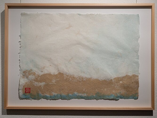 Kehls Recyclingkunst ist vielfältig wie der Abfall selbst, den er für seine Werke verwendet. Collagen aus alten Fotografien neu zusammengesetzt mit Pappkarton, Blaupausen-Abdrücke nach Cyanotypie, dem drittältesten Druckverfahren von fotografischen Bildern, und seine Papierkunst aus tierischem Kot verzieren nun das Innenleben des Stadthauses.