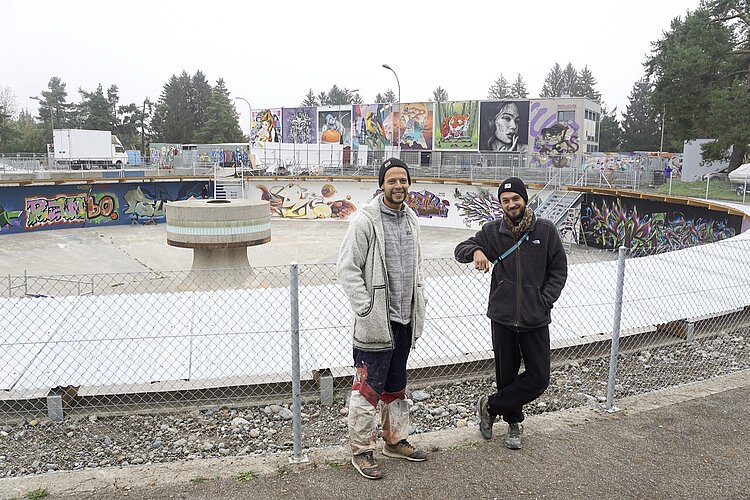 Spätestens seit für Harald Nägelis Strichfiguren Rekordpreise bezahlt werden, sind Graffiti in der Kunstszene angekommen. Damit möglicher Nachwuchs nicht im Dunken und versteckt vor der Polizei üben muss, schaffen Yassin Tair und Till Boller in der ehemaligen Kläranlage einen Ort, wo legal Schönes entstehen kann. Dank Unterstützungsgeldern aus dem Lotteriefonds sind die Arbeiten dieses Jahr gut vorangekommen. (rs.) Bild rs.