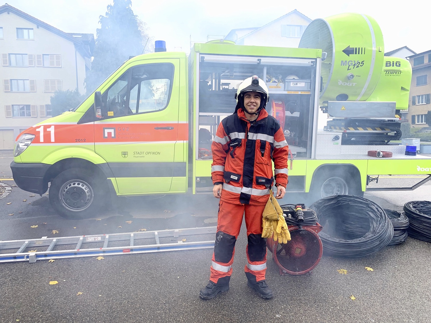 Am Wochenende fand die alljährliche Schlussübung der Stützpunktfeuerwehr Opfikon statt. Sie ist Training und Spass zugleich. Mit zwei Feuerwehrmännern – einem Neuling und einem Erfahrenen – tauchen wir in die Welt der Feuerwehr ein.