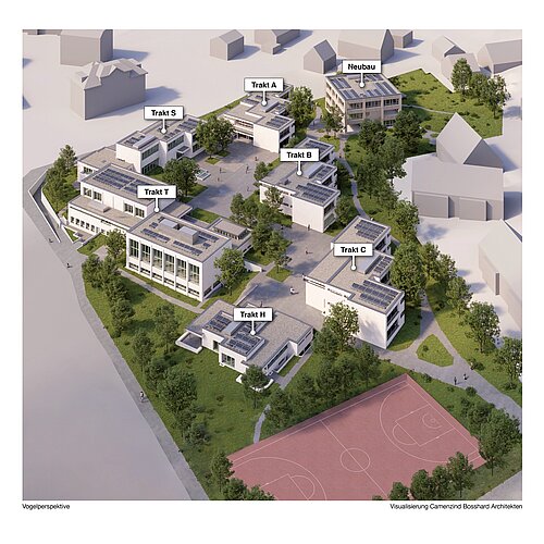 Diese Raumerweiterung nach innen ermöglicht neue Unterrichtsformen: Lernzonen und Halbklassenzimmer bieten auch in bestehenden Bauten Platz für neue pädagogische Konzepte, wie sie im Neubau Bubenholz bereits angedacht sind. Denn aus dem Blickwinkel der Nachhaltigkeit ist die Sanierung eines bestehenden Schulhauses wesentlich effizienter als ein kompletter Abriss und ein Neubau. «Die Mauern und die tragenden Elemente sind intakt», so Architekt Michael Bosshard. Lediglich im Trakt H und in der Turnhalle sind für die Erdbebensicherheit vier neue Betonwände und entsprechende Fenster vorgesehen.
