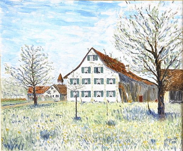 Einige Bilder zeigen Sujets aus Frankreich, andere aus Nordamerika. Als er später nicht mehr so viel reisen konnte, malte er Motive direkt vor der Haustür – aus Opfikon. Für die Übertragung der Proportionen arbeitete er häufig mit einem Raster. Auch die Rahmen fertigte er selbst an. «Er hat ursprünglich eine handwerkliche Ausbildung als Feinmechaniker gemacht», erzählt seine Tochter. «Die Holzleisten hat er gekauft und die Rahmen selber gebaut.» Inzwischen malt Pierre Vuille seit einigen Jahren nicht mehr. Seine Hände sind nicht mehr ganz ruhig, weshalb er sich nicht mehr daran heranwagt. «Er hat ein bisschen Angst wegen des Zitterns», sagt sie.