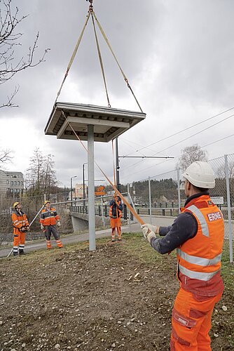 Im Gegensatz zu den Möwen sind viele Tiere auf der Kläranlage gerne gesehene Bewohnerinnen. So zum Beispiel die Schwalben. Seit vielen Jahren finden sie vor Ort gut platzierte Nistkästen. Und im Rahmen des grossen Umbaus entsteht in Bälde eine wertvolle Naturoase. Eine nährstoffarme Ruderalfläche ist geplant. Darauf werden Behausung für Wildbienen, Stein- und Holzhaufen, ein nährstoffarmes Kleingewässer und Trockenmauern ihren Platz erhalten. Eine vielfältige Pracht von einheimischen Blumen- und Wildstauden-Schönheiten wird gedeihen und ein emsiges Treiben verschiedenster Insekten wird zu beobachten sein.