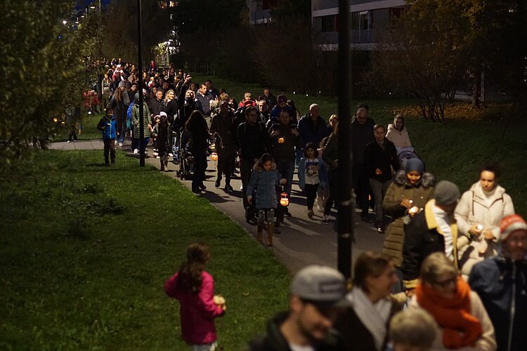 Am «Räbeliechtli-Umzug» im Glattpark nahmen über 400 Kinder und Erwachsene teil. Die Stadtmusik markierte dabei zum ersten Mal den musikalischen Auftakt – und will nächstes Jahr wiederkommen.