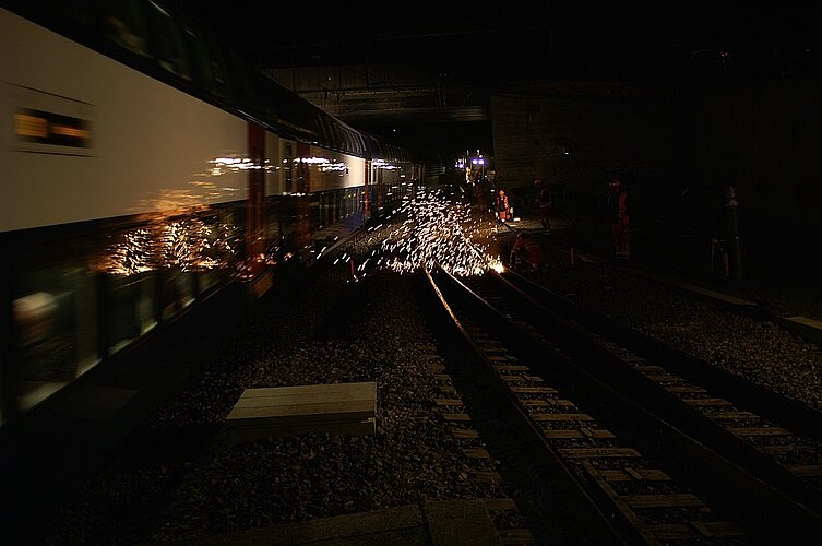 Der dichte Bahnverkehr tagsüber macht Nachtarbeiten nötig. Bild Archiv rs.