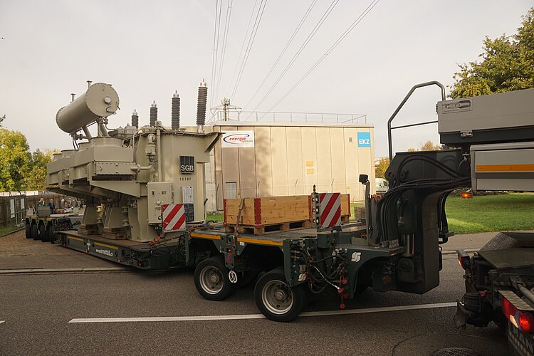 Eine Firma für Schwertransporte hat den ersten Trafo auf einem Spezialanhänger aus dem Limmat- ins Glattal gefahren – via Weiningen über den Berg nach Regensdorf, Rümlang und Seebach. Eineinviertel Stunden habe man dafür gebraucht, so Alfred Staubli von der Firma Ernst Autotransport. «Bei der Bahnunterführung in Regensdorf hatten wir noch 5 Zentimeter Luft zur Tunneldecke», umschreibt der Chauffeur, Projekt- und Teamleiter die Fahrt, welche nach Plan verlief.