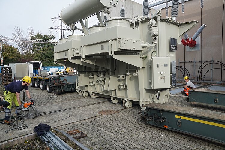 Beim Unterwerk in Opfikon manövriert er seinen Anhänger zentimetergenau über die Schienen neben dem Gebäude. Darauf wird der Transformator, der über passende Räder verfügt, dann direkt vom komplett teilbaren Spezialanhänger abgesetzt und mittels Motorwinde und Drahtseil seitwärts an seinen neuen Bestimmungsort verschoben. Das erneute Zusammensetzen des leeren Anhängers braucht dabei fast genauso viel Zeit wie das Absetzen der Fracht.