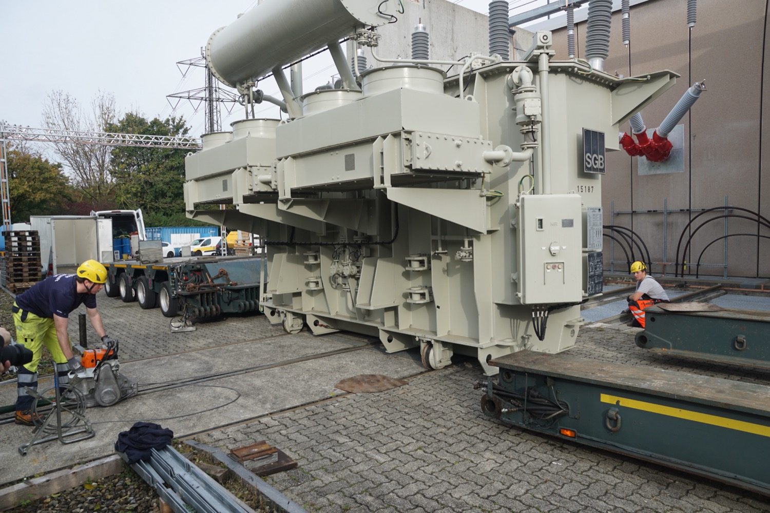 Zwei «neue» Transformatoren versorgen Opfikon ab kommendem Frühling mit Strom. Die beiden tonnenschweren Geräte werden derzeit – von den Stromkunden unbemerkt – an der Zunstrasse installiert.