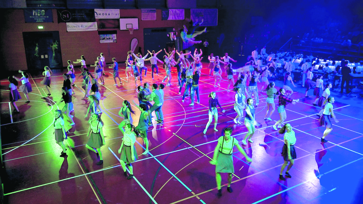 In der Folge performten Turnerinnen und Turner im Alter von 6 bis 18 Jahren, verstärkt mit einigen jung gebliebenen Erwachsenen – darunter auch einige Kaderturner – zu Stücken aus verschiedensten Genres wie Pop und Rock, Latin oder Filmmusik. Die verschiedensten Vereinsriegen wie Kunst- und Geräteturnen, Aerobic, Rhythmische Gymnastik, Sprung und Airtrack, Boden und Barren sowie Schaukelringe präsentierten ihr Programm, bevor in einem fulminanten Finale nochmals alle zusammen ein Feuerwerk zündeten. Rund 250 Jugendliche hatten am Ende instrumental oder turnerisch zu dieser einzigartigen Darbietung beigetragen und wurden vom Publikum denn auch verdientermassen mit Standing Ovations frenetisch gefeiert.