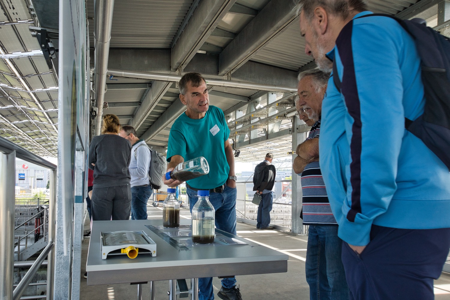 Rund 500 Besucherinnen und Besucher nutzten die Gelegenheit, bei strahlendem Spätsommerwetter einen Blick hinter die Kulissen zu werfen und den spannenden Reinigungsprozess des Abwassers zu entdecken («Stadt-Anzeiger» vom 28. August). Auf einem weitläufigen, gut beschilderten Rundgang wurde den zahlreichen Gästen der Reinigungsprozess nähergebracht – unterstützt durch bunte, anschauliche Illustrationen, welche die einzelnen Prozesse und Reinigungsstufen leicht verständlich erklärten. Schritt für Schritt verfolgten die Besucherinnen und Besucher den Weg des Wassers: von der mechanischen Reinigung mit Rechen, Sandfang und Vorklärbecken bis hin zur Schlammbehandlung, wo der anfallende Schlamm in Faulbehältern ausgefault und entwässert wird. Eines der Highlights war der Blick auf das neue Nereda-System – ein innovatives Verfahren, bei dem sich Mikroorganismen in kleinen Granula ansiedeln und so besonders effizient reinigen. Als kleine Verschnaufpause mitten im Rundgang diente eine Bilderausstellung, die einen künstlerischen Blick auf die Kläranlage bot. Die farbigen, überraschenden Motive zeigten einen etwas anderen Zugang zur Welt des Abwassers und der Technik.