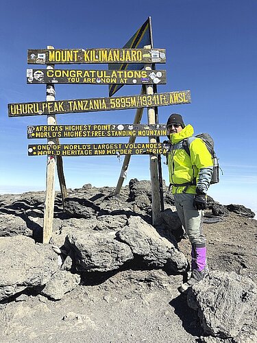 Den Berg bestieg die Gruppe auf der Lemosho-Route. Der Trip dauerte acht Tage. Die letzte Etappe auf den Gipfel ist mit 1395 Höhenmetern jedoch ziemlich anspruchsvoll. Probleme bereiten oft Kopfschmerzen, Schwindel und Übelkeit. «Auch in unserer Gruppe hatten ein paar Leute mit Magen-Darm-Problemen zu kämpfen», erzählt Klaus Homburg. «Das Base-Camp befindet sich auf 4700 Metern. Die letzte Etappe war happig, wir kamen nur sehr langsam voran, denn der Sauerstoffmangel war deutlich spürbar. Doch es war ein unglaubliches Gefühl, als wir oben ankamen. Wir haben es als Gruppe geschafft!»