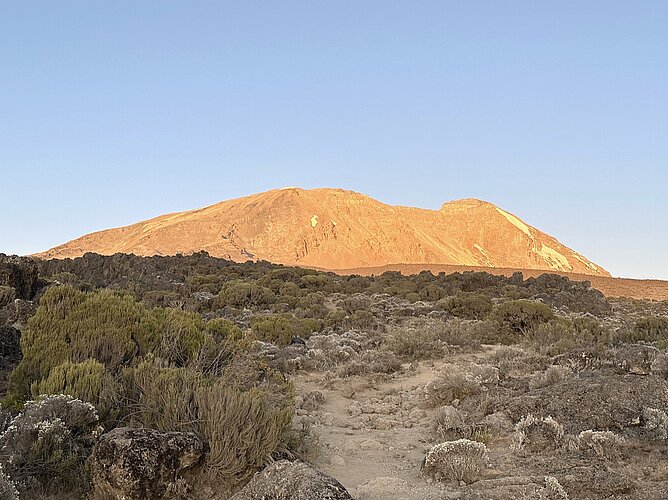 Den Kilimandscharo beschreibt Klaus Homburg erst einmal als riesigen Schutthaufen, als Kiesgrube. «Im unteren Bereich gibt es Vegetation, dann folgt eine Dschungel-Landschaft und ab ungefähr 4000 Metern sieht der erloschene Vulkan aus wie eine Mondlandschaft. Das Gestein bildet manchmal ganz bizarre Formen.»