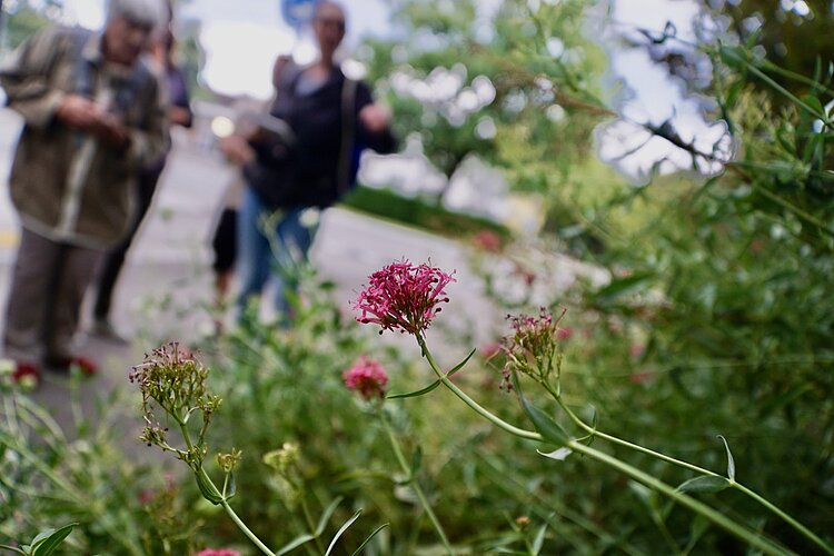 Die Biologin Eva Bantelmann beschäftigt sich seit über 15 Jahren mit dem Thema und hat unter anderem die Koordinationsstelle Neobiota im Kanton Aargau aufgebaut und geleitet. Sie führte die Handvoll Teilnehmerinnen und Teilnehmer vom Stadthaus entlang der Talacker- und der Giebeleichstrasse zum Bahnhof Glattbrugg und durch die Bruggackerstrasse wieder zurück. Dass der Spaziergang durch Wohnquartiere führte, ist kein Zufall, denn die meisten problematischen Pflanzen sind extra als Zierpflanzen eingeführt worden und verbreiteten sich aus den Gärten in die freie Natur. So traf die Gruppe auch schon bald auf Sommerflieder, Götter- und Essigbaum, Kirschlorbeer, Korallenstrauch (Cotoneaster) und die Rote Spornblume, welche noch relativ neu ist, sich aktuell ausbreitet und gemäss Kanton beobachtet werden soll. Bislang war dem aber nicht beizukommen: Ein Verkaufsverbot gab es nur für einige wenige Pflanzen. Ambrosia, der Riesenbärenklau und das Schmalblättrige Greiskraut müssen im Kanton Zürich als Einzige auch von privaten Gartenbesitzern bekämpft werden. Die Liste der invasiven Neophyten ist aber um ein Vielfaches länger, und die meisten – auch problematische – waren im Verkauf bislang nur mit einem Hinweis auf die «Sorgfaltspflicht» versehen. Das hinderte sie aber nicht am Versamen. Ein Beispiel hat Eva Bantelmann kürzlich im Walliser Lötschental entdeckt: Dort spriesst die Vielblättrige Lupine inzwischen bereits auf einigen Bergwiesen und verdrängt dort seltene Orchideen.
