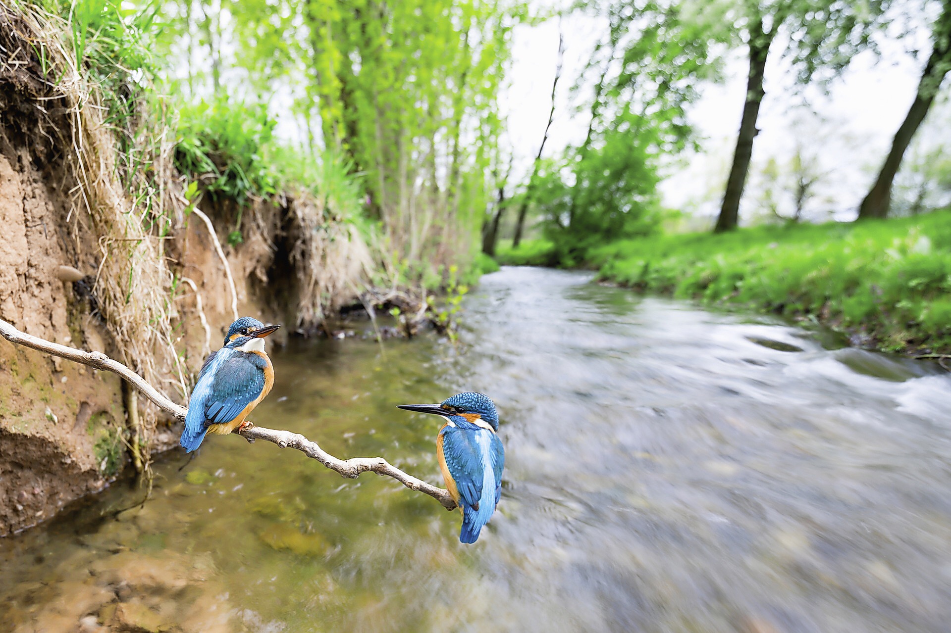Der Eisvogel steht für klare Flüsse, Auen, intakte Natur und Lebensräume voller Dynamik. «Er bewohnt das ganze Jahr über langsam fliessende oder stehende Gewässer wie Bäche, Flüsse, Altarme, Auenlandschaften und Seen», schreibt Birdlife Schweiz. Entscheidend für ihn sind ein reicher Bestand an Kleinfischen, klares Wasser sowie genügend Sitzwarten wie Äste, Schilfhalme oder Steine.