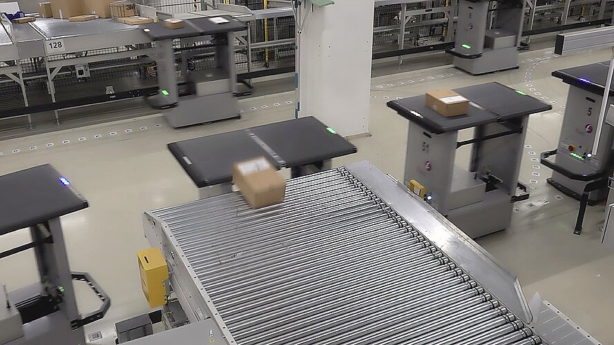 Sie erinnern ein bisschen an die Minibar-Wägelchen in den Zügen, sind aber vergleichsweise flink unterwegs. Im stetigen Kreislauf durch die Sortierhalle, manchmal schert eines aus, nimmt einen direkteren Weg und fügt sich wieder ein.