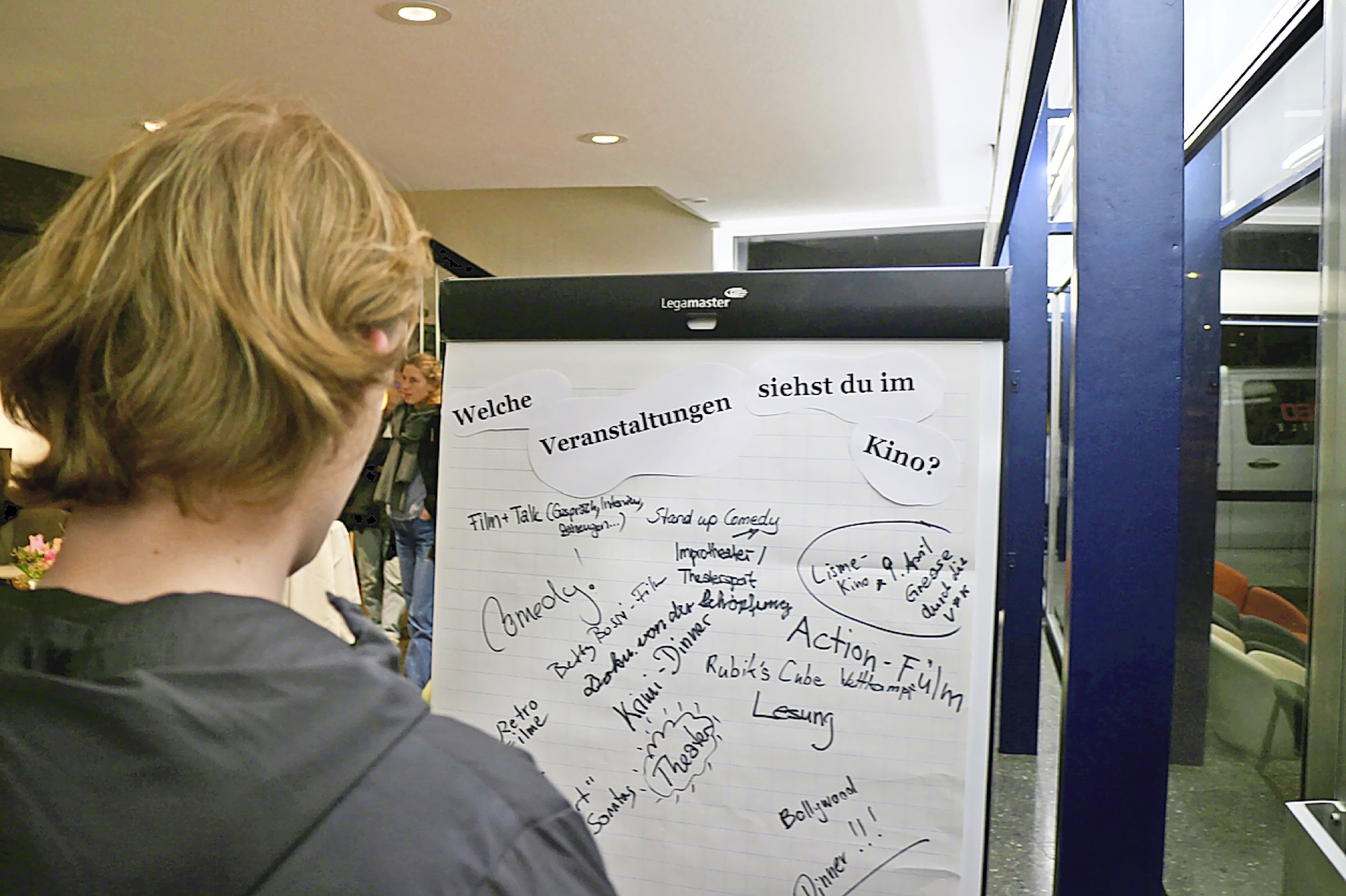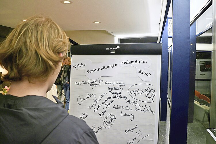 Die Offenheit zeigt sich im Programm: Neben ausgewählten Filmen am Abend gibt es Lunchkino über Mittag und Filmabstimmungen über die Plattform «The Ones We Love». Im Foyer hängt ein Flipchart, auf dem das Publikum Vorschläge eintragen kann. Die Besucherinnen und Besucher sind eingeladen, aktiv mitzuwirken und eigene Ideen einzubringen. So entstehen Formate wie das Trendphänomen Strick- oder Häkelkino für gemütliche Filme wie «Mamma Mia!», Rubik’s-Cube-Abende oder Veranstaltungen, die Film mit Musik und Theater verbinden. «In konventionellen Kinos gibt es ein Überangebot an Blockbustern. Wir wollen Menschen durch andere Formate ins Kino holen», sagt Ettlin.