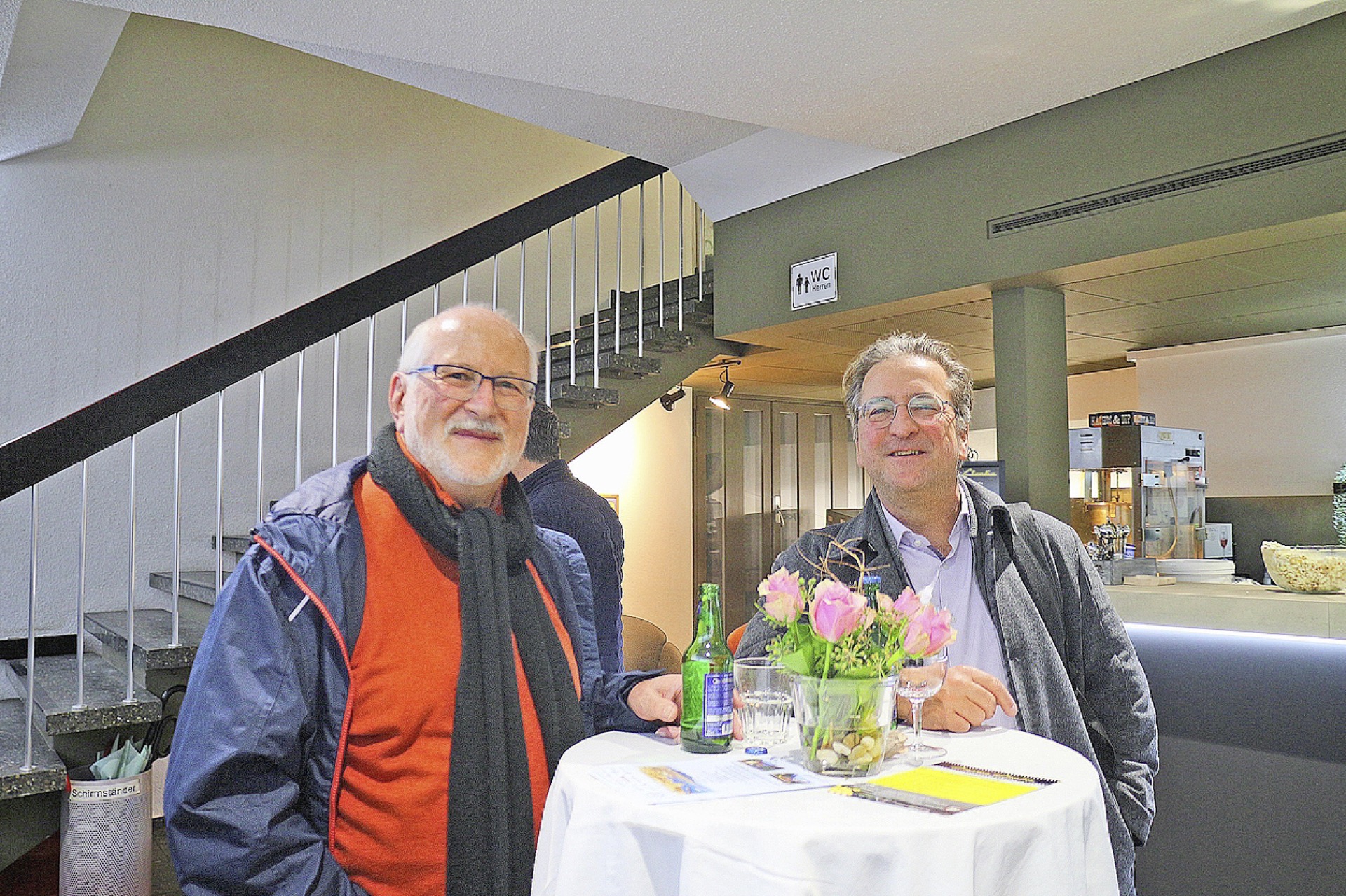 Doch an diesem Abend steht weniger der Film als das gemeinsame Erleben im Mittelpunkt. «Kino ist nicht nur Filme- schauen. Es ist etwas, das man zusammen macht», sagt René Kraft und Felix Koster ergänzt: «Man wartet auf die Pause. Dieses Warten unterscheidet das Kino vom Streaming. Zu Hause kann man jederzeit aufstehen, im Kino wartet man gemeinsam – und beginnt danach zu sprechen.» Die Pause wird so selbst zum Erlebnis: Manche setzen sich nochmals hin, andere bilden kleine Gruppen auf den bunten Sesseln im Foyer oder draussen vor dem leuchtend gelben Schild, ein Glas Wein in der Hand.