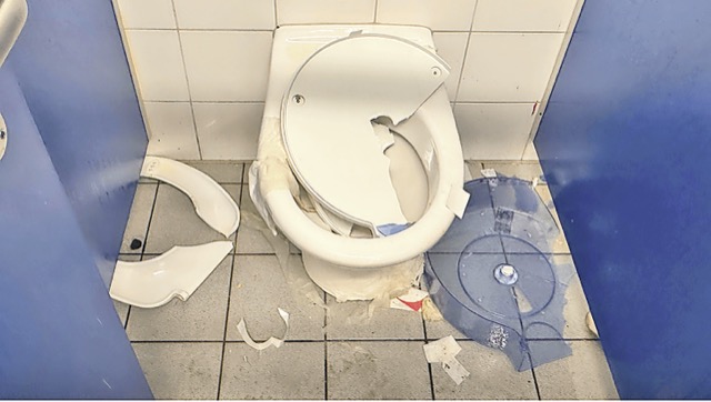- Mehrere WC-Ringe wurden abgerissen und verbrochen.