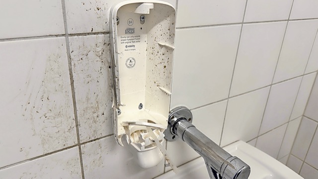 - Die Sensoren der Pissoirs wurden zerschlagen.