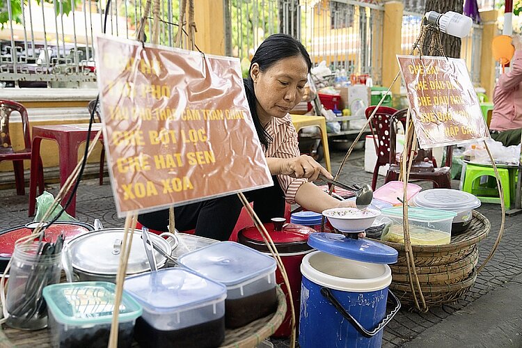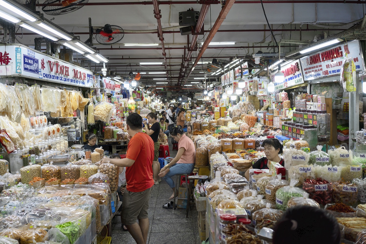 Das Leben in Ho-Chi-Minh-Stadt spielt sich auf den Strassen ab, vor allem in den Märkten. Zu Besuch im Binh-Tay-Markt in Cholon, dem chinesischen Viertel der Stadt: Obst, Gemüse, Kleidung oder Haushaltswaren – hier gibt es nahezu alles. Die Markthallen sind eng, der Geruch von Gewürzen liegt in der Luft. «Guten Tag, möchten Sie etwas kaufen?», rufen Verkäufer potenziellen Kunden zu und preisen ihre Ware an.