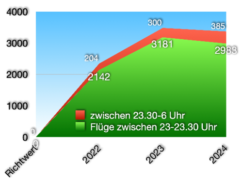 Die Trendwende scheint erreicht: 2024 starteten und landeten erstmals weniger Flugzeuge nach 23 Uhr als im Jahr zuvor. Und das soll auch 2025 so…