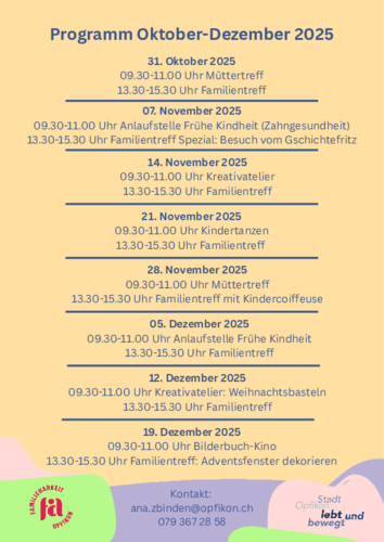 Familientag Blumenstrasse, Programm Oktober – Dezember 2025