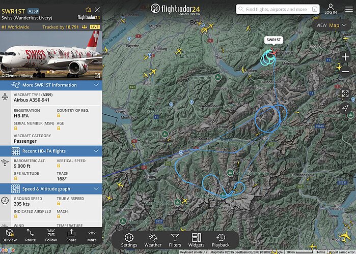 Der erste Airbus A350 der Swiss ist in der Luft. Der moderne Langstreckenjet hat das Werk von Airbus verlassen, ist in Toulouse abgehoben und auf dem Weg in seine neue Heimat. Die Ankunft am Flughafen Zürich ist kurz nach 15 Uhr geplant.