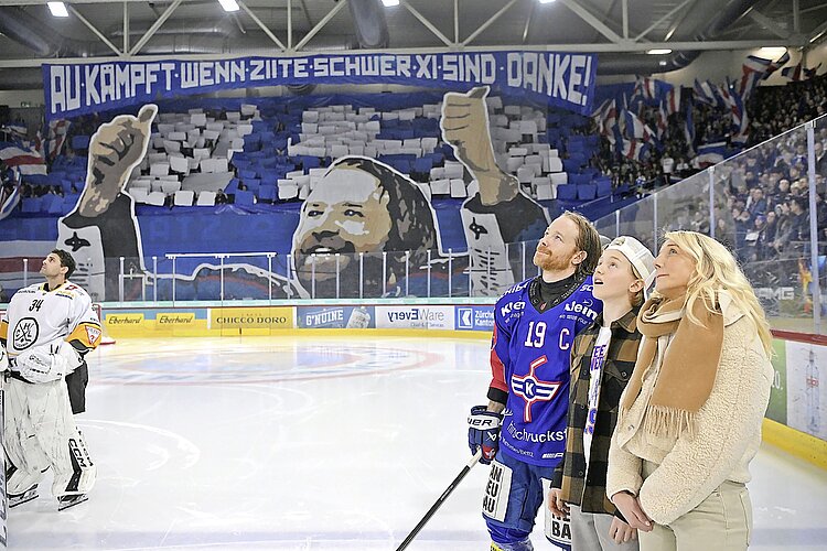 Kellenberger selbst hatte schon vor Beginn des Heimspiels vom Samstag sichtlich bewegt gewirkt. Allein die Choreografie der Klotener Stehplatz-Fans war das Eintrittsgeld wert. Sie erinnerte an die vier Jahre in der Swiss League, als Kellenberger nach dem Abstieg aus der National League (2018) den Flughafenstädtern die Treue gehalten hatte. Auf dem Banner stand: «Au kämpft, wenn Ziite schwer xi sind. Danke!»