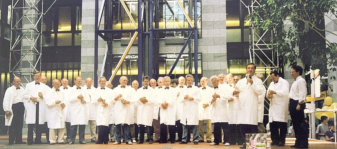 Mit dem Männerchor verschwindet im Sommer ein weiterer Opfiker Verein – nach 164 Jahren. Unser Bild zeigt einen Auftritt im Jahr 2000 als Apotheker. Das Durchschnittsalter im Verein beträgt am Schluss 83 Jahre, und Nachfolger für die am Schluss noch 19 Sänger sind nicht in Sicht. So hat man bereits Ende 2024 die Auflösung des traditionsreichen Vereins beschlossen, reist aber noch einmal in den Schwarzwald und lädt zum Risottoplausch. (rs.)