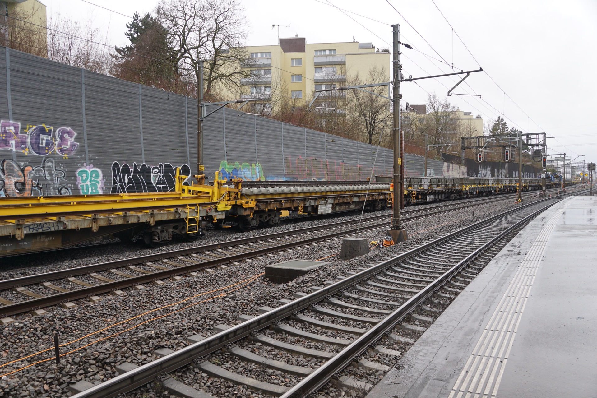 Erneuert wird die Fahrbahn der 100er-Gleise zwischen Oerlikon und Flughafen. Die Strecke kann deshalb nur einspurig befahren werden. Die Unterhaltsarbeiten führen zu Ausfällen und Fahrplanänderungen im Fern- und Regionalverkehr auf der Strecke Zürich HB–Winterthur.