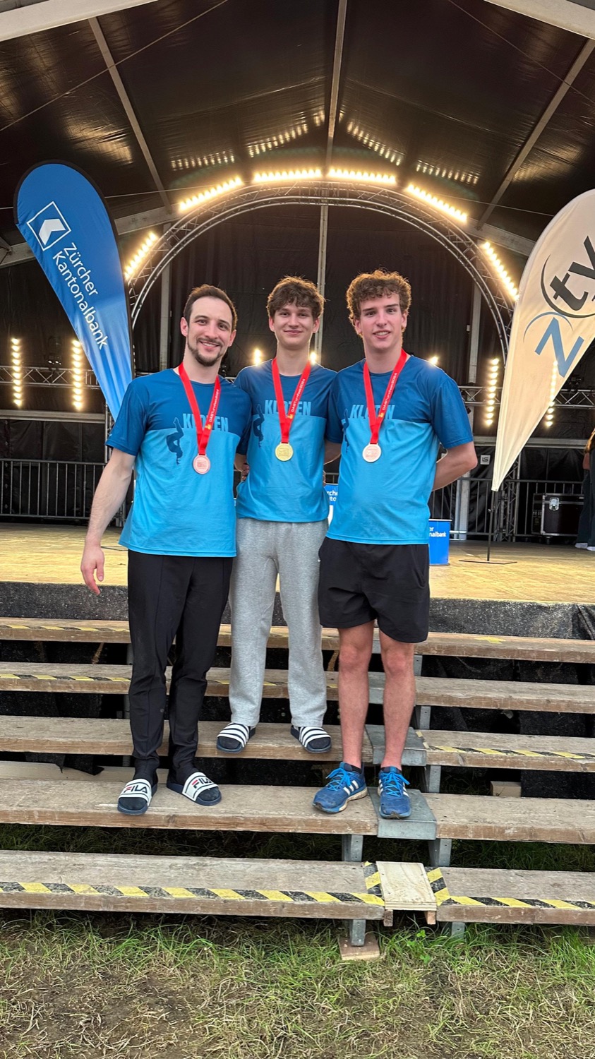 Drei der vier Medaillengewinner: Adrian Keller (Bronze, K7), Mika Köble (Gold, K5), Yannick Volkart (Bronze, K6). Bild zvg