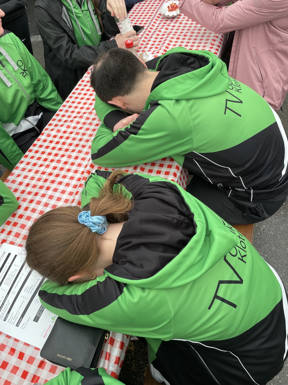 Im Turnzelt wärmte sich der TV Opfikon-Kloten erneut gut auf, damit es später keine Verletzungen gab. Motiviert hiess es dann um 13.50 Uhr Showtime. Die Beine und Arme wurden nicht ganz so gut gestreckt wie erhofft, aber dennoch reichte dies für die Note 9,30. Mit drei anderen Turnvereinen teilten sich die Chlopfiker den neunten Rang von insgesamt 17 Teilnehmern. Leider reichte es an keinem der Geräte für den Final, und da die Rangverkündigung erst um 20 Uhr stattfand, musste nun Zeit totgeschlagen werden. Einige vertrieben sie sich mit Kartenspielen und andere schauten gespannt den anderen Turnvereinen zu. Ein kurzer Powernap durfte natürlich auch nicht fehlen und nach dem langen Warten sowie einer kleinen Verspätung wurde die Rangverkündigung durchgeführt.