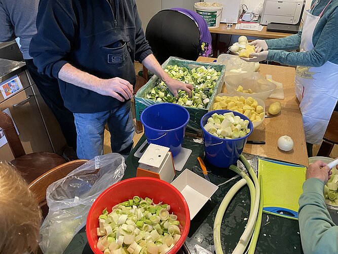 Aber vorher muss hinter den Kulissen emsig gearbeitet werden: Die Köche der Glattchuchi sind bereits am Freitag dabei, das Gemüse zu rüsten. Da wird einiges geschält und geschnitten. Und am Samstagmorgen früh werden die Kessel eingeheizt, damit die Würste im Treber des letzten Wümmet gegart werden können.