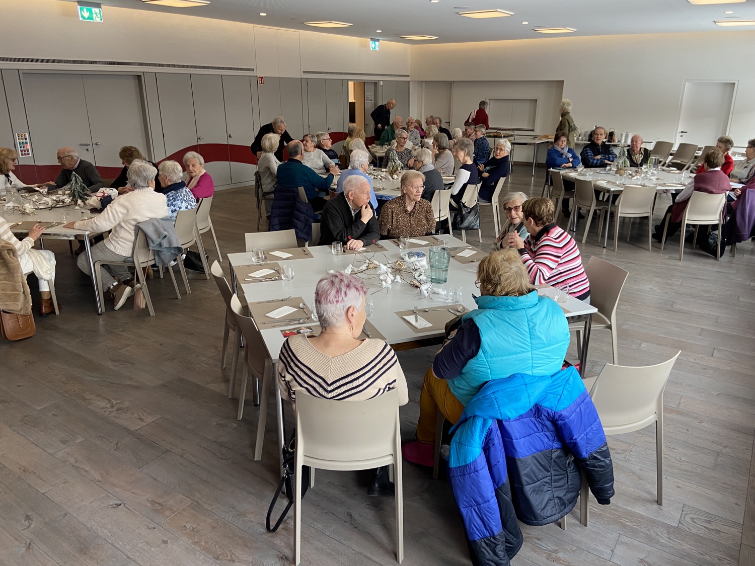 Was uns besonders gefreut hat war, dass wir neue Gesichter begrüssen durften haben. Im schön dekorierten Saal wurde den TeilnehmerInnen ein währschaftes Mittagessen mit Dessert und Kaffee serviert. Auch wenn sich das Tavolatateam noch an die neuen Räumlichkeiten und Kochgelegenheit umstellen und anpassen musste, gab es seitens der Teilnehmenden viel Lob. Dies spornt uns natürlich an und wir werden weiterhin unser Bestes geben.