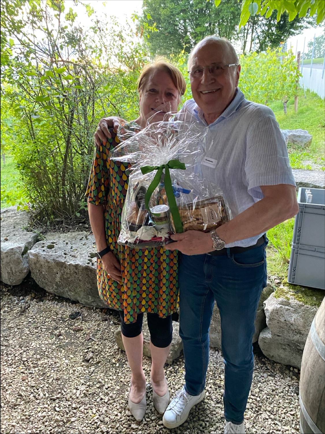Nach diesem gerüttelten Mass an Informationen war Hunger aufgekommen und Metzgermeister Franz Arnold hatte den Grill aufgeheizt. So freuten sich alle auf die leckeren vorbereiteten Fleisch- und Fischspezialitäten und genossen dazu ein feines Glas Wein bei bester Stimmung und guten Gesprächen. Den süssen Abschluss bildete dann wiederum die bereits traditionelle Cremeschnitte am Meter, zusammen mit einem Kaffee und eventuell einem kleinen Grappa. Dem Vertreter der Rebberg-Genossenschaft RGO, Präsident Hansruedi Hottinger, sei hier noch einmal herzlich für das Gastrecht gedankt.