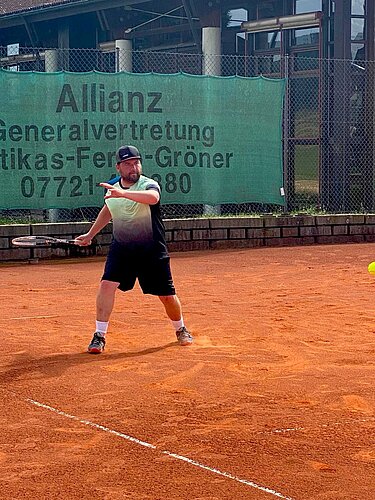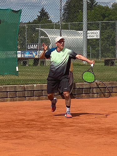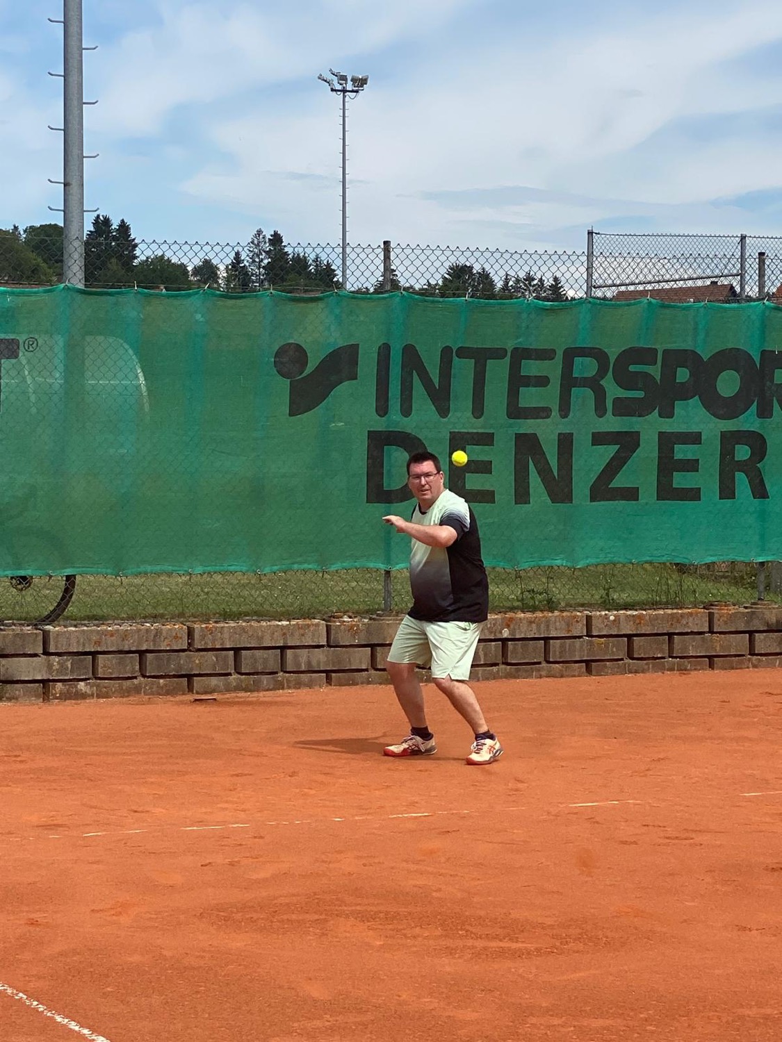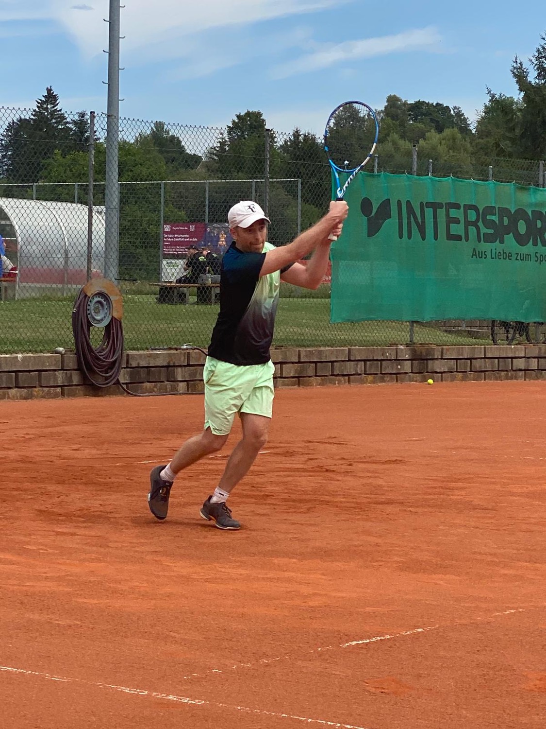 Bei mittlerweile hochsommerlichen Temperaturen starteten dann die nächsten zwei Partien: Sebastian Wölfle (DE) gegen Matthias Daubenfeld (CH) und Felix Scherer (DE) gegen Rolf Wehrli (CH). Leider gingen beide Partien verloren. Rolf legte zwar einen fulminanten Start im ersten Satz hin, aber musste diesen dann am Ende trotzdem noch an den deutlich jüngeren Gegner abgeben. So stand es dann 7:5, 6:1 für Felix aus Öfingen.